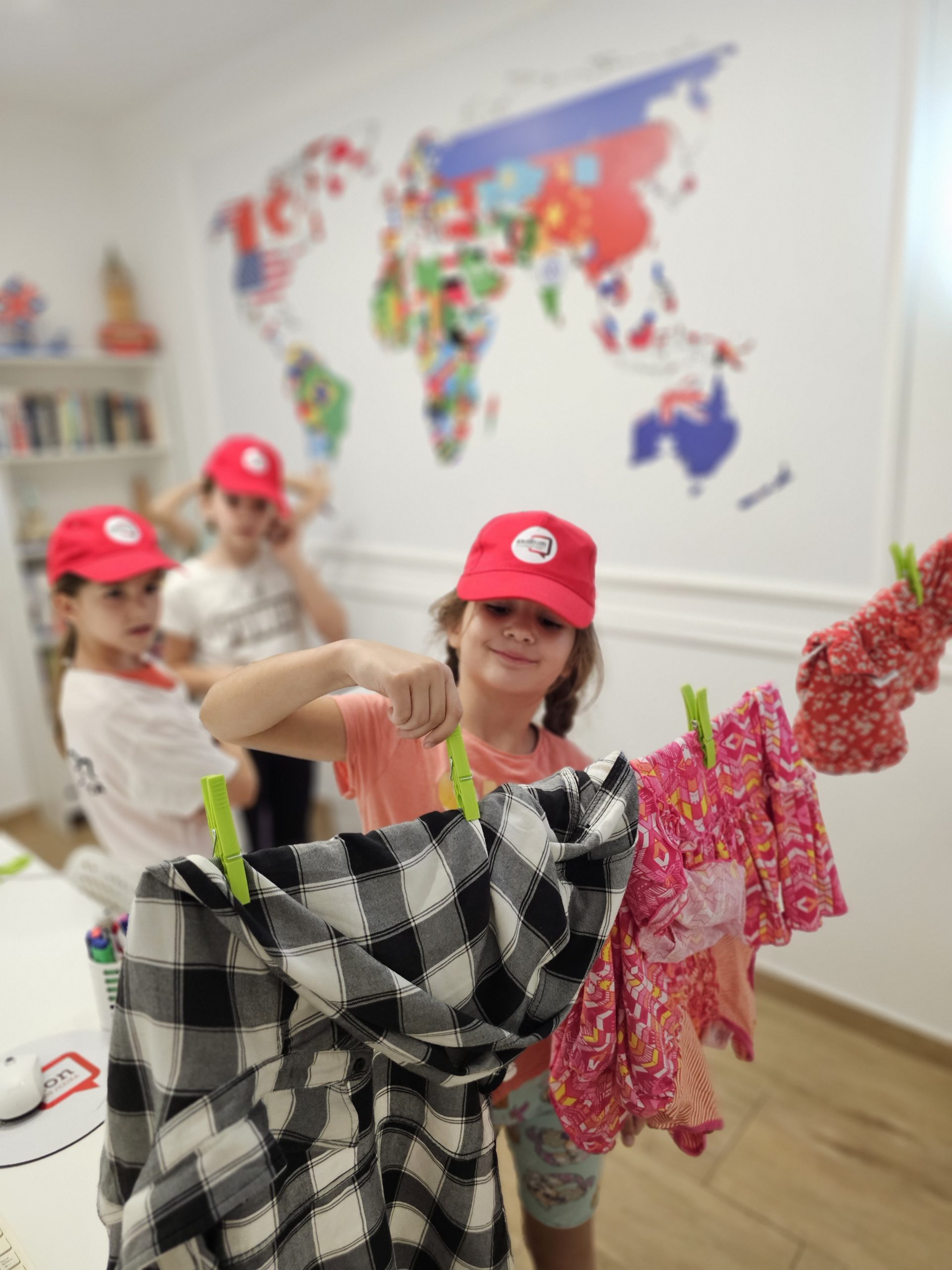 📚🧥 Pre ovog časa, naši učenici su proveli nekoliko časova učeći reči za različite komade odeće. Učili smo o majicama, pantalonama, čarapama, haljinama i drugim odevnim komadima! Svi su se trudili i marljivo vežbali, kako bi danas mogli sve to primeniti u praksi. Ova postepena priprema pomogla im je da se osećaju sigurnije i da maksimalno iskoriste današnji čas.